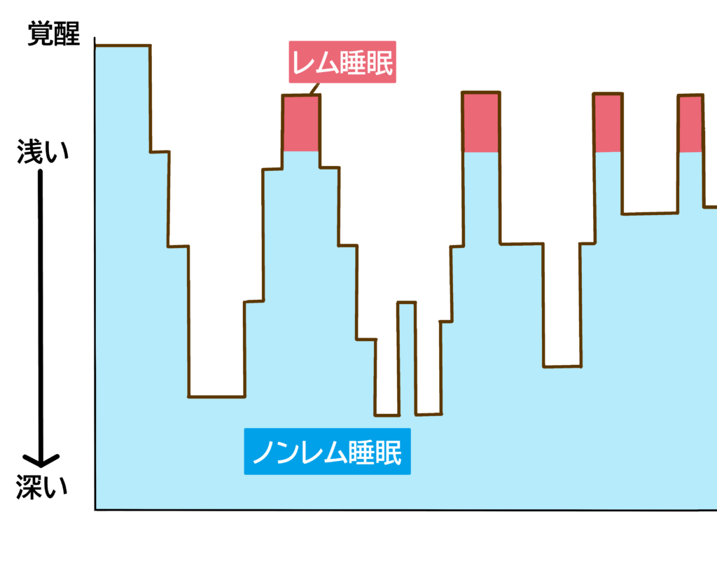 睡眠は大きく 「ノンレム睡眠」「レム睡眠」 に分けられます。